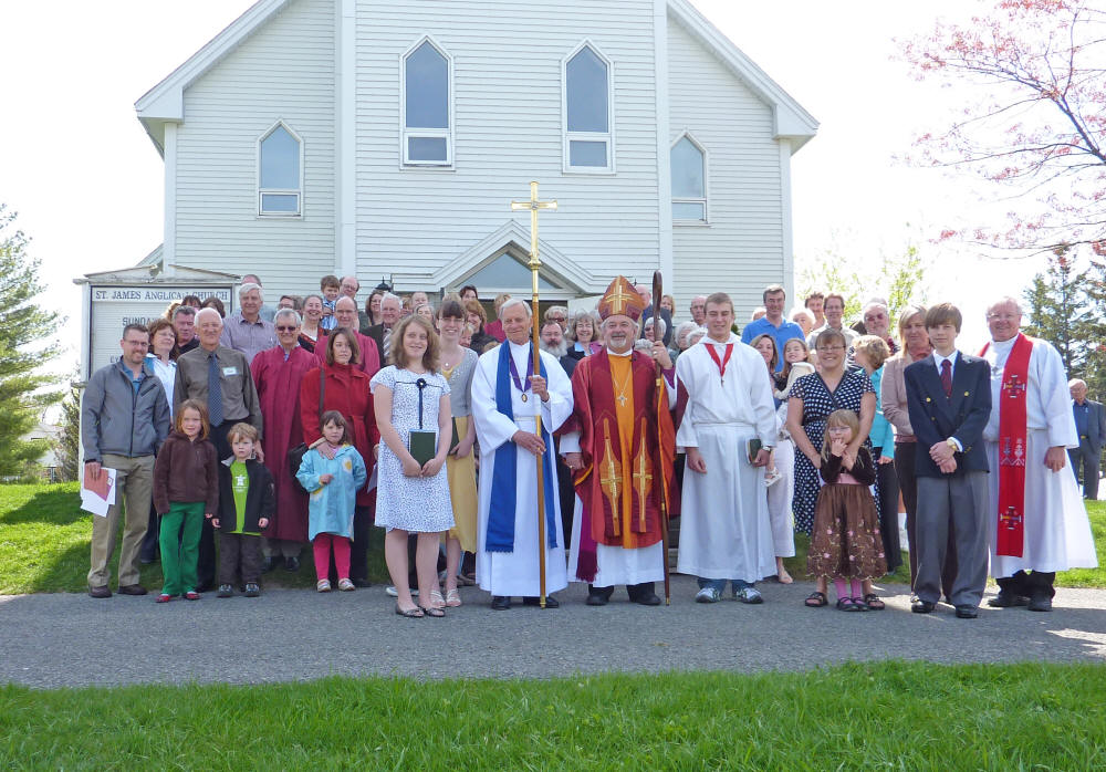 Immediately following the service, we all gathered on the front steps to pray with the Bishop as he blessed the sign.