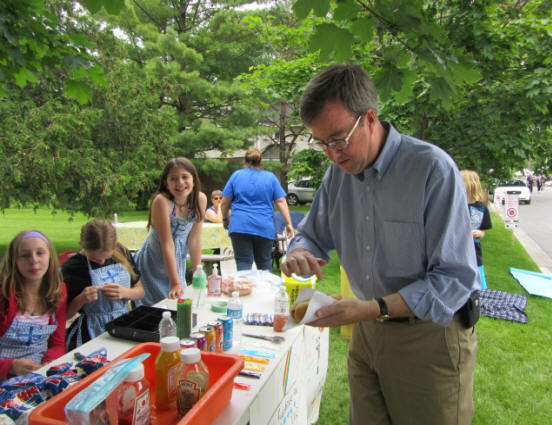 The people of Saint James' once again joined in the celebration of Dickinson Days, honouring Moss Kent Dickinson, founder of Manotick. Our float was in the parade on Friday evening. The Youth Group was active on Saturday, and their stand attracted the attention of Ottawa mayor Jim Watson.