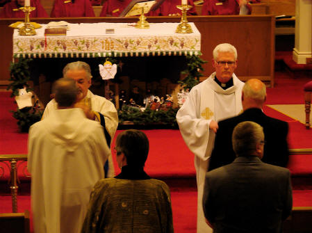 Fr. Ross' Induction Fr. Ross Hammond was inducted as rector of the parish of Saint James the Apostle on January 5. Bishop John Chapman presided over the service, attended by priests throughout the Diocese and beyond, as well as former parishioners and friends from Saint John the Evangelist and All Saints Westboro - and, of course, a large contingent from our own parish. We were particularly pleased to welcome two former Saint James' priests, Allan McGregor and Nancy Murphy. The service of induction marks the beginning of a new phase in the life of a parish. Some features of this service have their origins in the Middle Ages; others are comparatively new. This mixture of old and new reminds us that, while Christian ministry has been offered in Manotick since the nineteenth century or earlier, the unchanging Gospel has to be made fresh for each succeeding generation. We welcome Fr. Ross and Albert Klein to Saint James', and look forward to many years of their participation as part of the Saint James family.